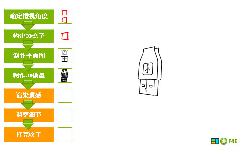首先我要說的是。fireworks本身不帶直接透視功能,不過有透視輔助線(其實也不太方便)和3d插件,但是直接做能夠更好地練習透視能力。我這里畫的整套圖標都是同一個角度透視的,所以我采用一個正方形而不是這個usb插頭本身,主要是為了適應更多圖標。