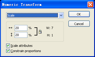 選擇modify(修改)-transform(變形)-numeric transform(數值變形),輸入20,將圖像縮小20%|||