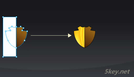 7.(此處一步是小編加進去)通過路徑組合打孔得到月牙形,然后和開始畫的盾的路徑組合為蒙板,然后再進行線性漸變,得到高光部分。