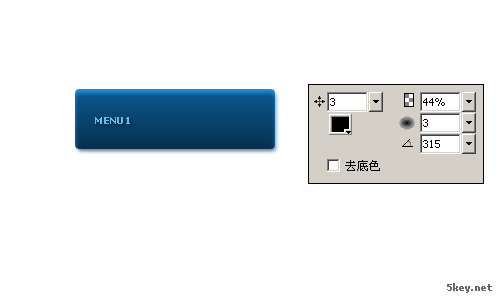 5、添加文字,選擇字體verdana。9px大小并添加外部投影,得到如下效果;