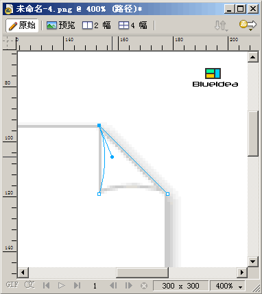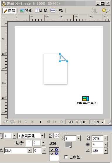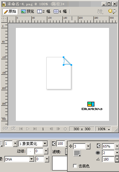8、放大畫布比例,選擇子選取工具(白箭頭),首先點擊卷角部分左下角的節點,松開鼠標,按住alt鍵后用子選取工具拖動此節點,控制好手柄,使卷角部分底邊變成弧形曲線。