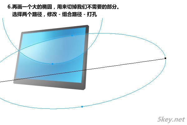 六、再畫一個大的橢圓,用切掉我們不需要的部分。