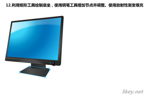 十二、利用矩形工具繪制底座,使用鋼筆工具增加節(jié)點并調整。使用放射性漸變填充