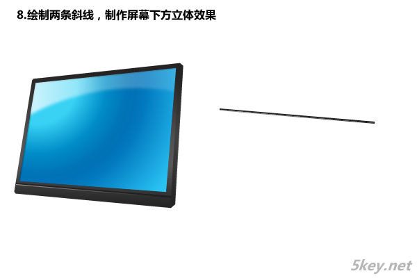 八、繪制兩條斜線,制作屏幕下方立體效果
