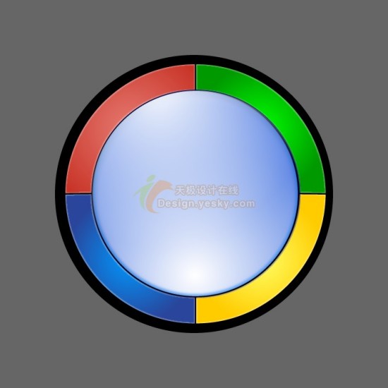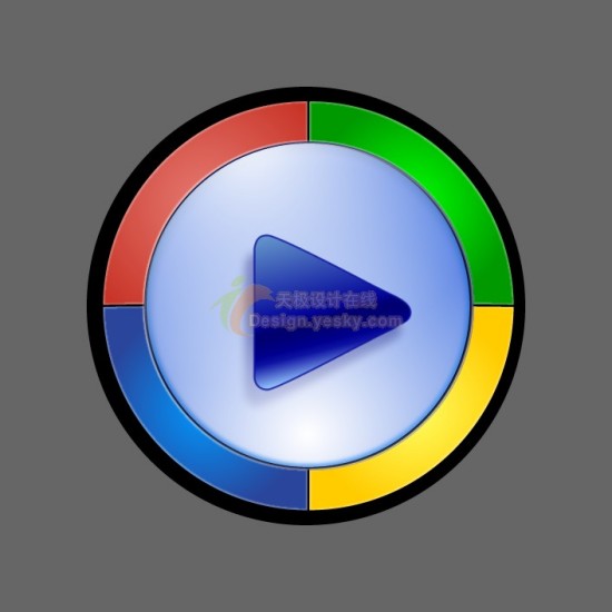 現在整個圖標這個渾然一體的質感效果,是通過這樣一層層的細節的處理得到的,比如四個光環的顏色的漸變,中間圓形多重濾鏡效果的應用,以及三角箭頭中使用四種顏色的線性漸變和投影,到最后半透明的扇形覆蓋,組成了這個生動的、讓人“眩目”的圖標,設計來源于生活,來自于細節。