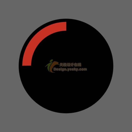 1、在新建的fireworks灰色畫布上按住shift鍵畫一個黑色的500*500像素的正圓形,以此作為圖標的黑邊,然后在工具面板中選取‘畫圈形’工具,畫出一個環狀的圖形,接著鼠標點取環形圖的黃色控制點順時針進行拖動,將圓環分段(1/4),如圖。