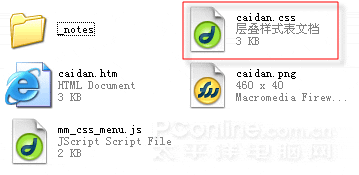 8、將菜單文件導(dǎo)出到你準(zhǔn)備好的文件夾內(nèi),打開該文件夾,會發(fā)現(xiàn)里面出現(xiàn)了一個css層疊樣式表文檔,如下圖所示。這就是我們需要重點介紹的主角兒了。