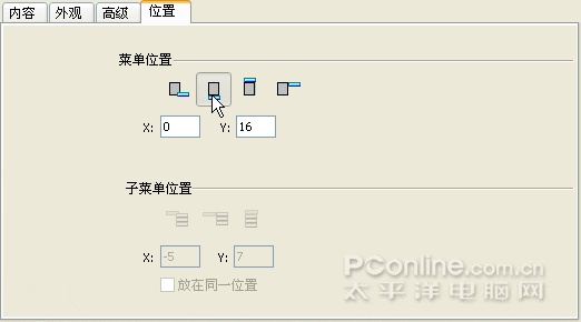 6、菜單位置我們選擇“將菜單位置設(shè)置到切片的底部”這種格式,如果對于y值不滿意的話,此處可以調(diào)整,也可以通過后期進(jìn)行調(diào)整,這就需要用到我們今天要著重介紹的css格式菜單的知識了。設(shè)置完畢了,完成即可。