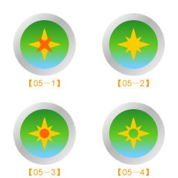 用星形工具畫出一個五角星,改變點數為4點,得到了一個四角星(可根據個人喜好改變其形態和尺寸),水平、垂直對齊于下方任何一個圓;再畫一個稍小一點的四角星(或復制粘貼)并旋轉45度,水平、垂直對齊于下方任何一個圓;(圖05-1)