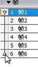 在洋蔥皮面板里選擇“顯示所有幀”,可以看到在幀面板最左邊有條線: