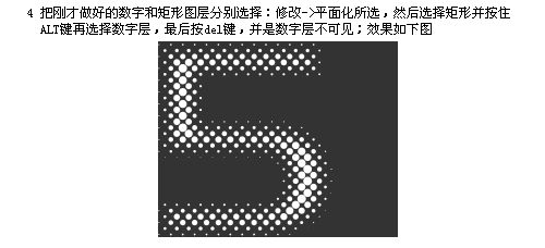 四、把剛才做好的數字和矩形圖層分別選擇:修改——平面化所選,然后選擇矩形并按住alt鍵再選擇數字層,最后按del鍵,并使數字層不可見;效果如圖;