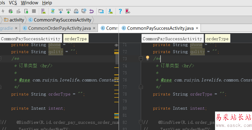 以上就是Android Studio對比兩個文件代碼的方法,雖然和eclipse不同,但是也很簡單。