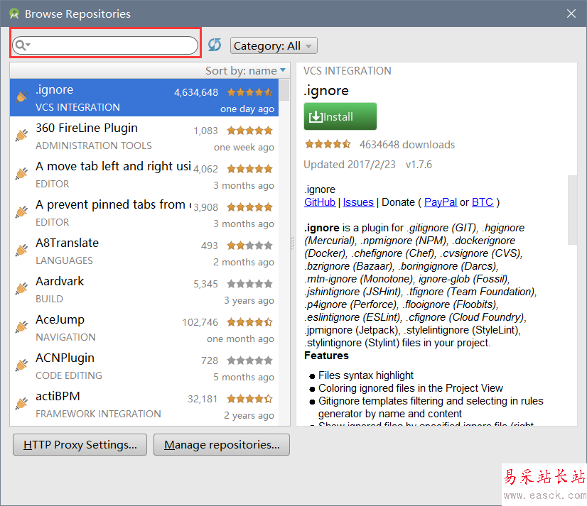 4、在搜索框中搜索需要的組件 ,并可以看到下載的位置有install按鈕,點擊就可以下載插入組件