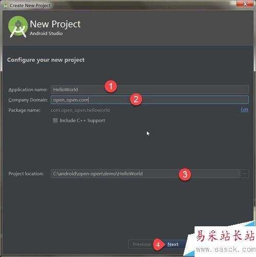 2、接下來需要輸入應(yīng)用名稱(第一個字母要大寫)、公司域以及指定應(yīng)用存放目錄,點擊Next按鈕進(jìn)入下一步,如下圖所示:如果第一個字母不是大寫,會提示:The application name for most app begins with an uppercase letter