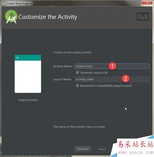 6、然后需要給Activity和Layout起一個名字,如下圖所示: