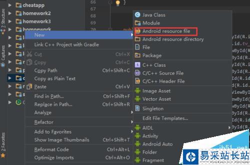 2、右擊將要新建的xml 文件的module,選擇Android resource file