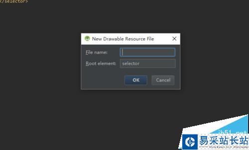 2、在彈出的頁面直接新建即可,好了,大伙應該掌握了如何在Android studio中創建selector 的文件了。