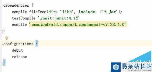 2、在library的buld.gradle最后面添加 :configurations { debug release}