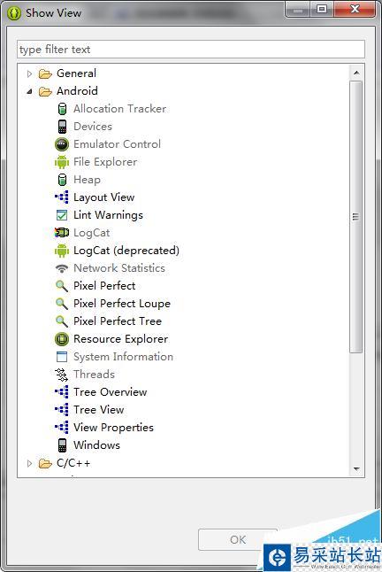 5、打開Window->Show View -> Other-> Android選項卡,里面的Devices,windows都很有用