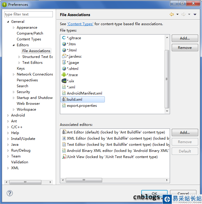 接下來在File type:欄選中build.xml,在Associated Editor:欄選中Ant Editor,點擊Default,build.xml的圖標變成了一個小螞蟻,配置完畢。