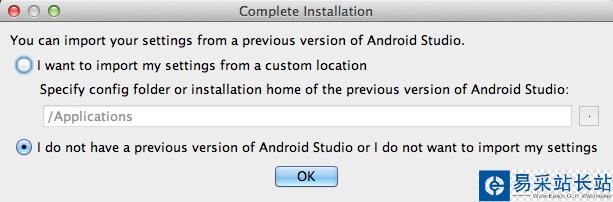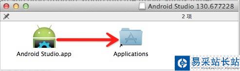 到http://developer.android.com/sdk/installing/studio.html下載安裝包(dmg文件),打開并將Android Studio拖動到Applications中去,拷貝完畢即可,可以到應用程序下將圖標拖動到Dock上。