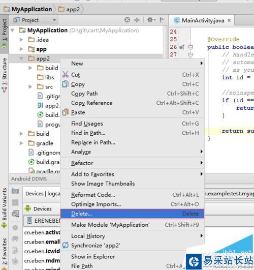 4、如下圖,在項(xiàng)目上點(diǎn)擊右鍵,delete就可以把module刪除掉了
