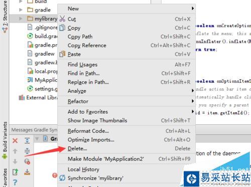 6、而Android studio的項(xiàng)目已添加的模塊需要手動(dòng)進(jìn)行刪除,找到這個(gè)模塊的文件,進(jìn)行右鍵》》delete。