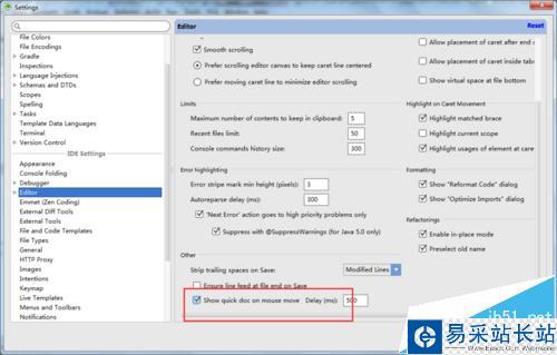 3、右面往下拉鼠標,直到最后,找到“show quick doc……”如圖: