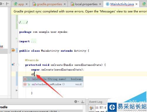 1、進(jìn)行打開電腦已經(jīng)安裝好的Android studio的開發(fā)軟件,進(jìn)入到了界面中之后,進(jìn)行選中一個文件的代碼中。