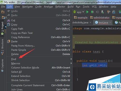 2、然后進(jìn)行點(diǎn)擊Android studio的菜單中的額一個(gè)“edit”的選項(xiàng)按鈕。