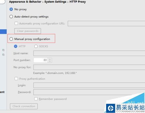 5、進入到了HTTP proxy的選項,相關的默認是關閉的,進行勾選上manual proxy configuration的選項。