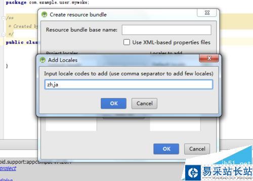 5、就會彈出了一個add locales的窗口中,然后就可以在輸入框中,進行輸入語言的字母,多個的需要逗號進行隔開,例如為zh,ja。