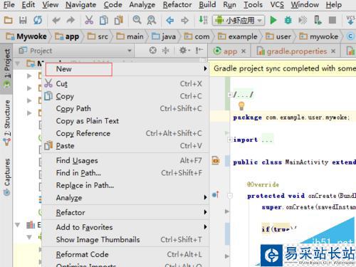 2、選中Android studio的當前項目中,然后進行右鍵的方式,彈出了下拉菜單中進行選擇“new”。