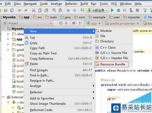 3、這樣就會選中菜單中的new的選項中之后,就會彈出了下一級菜單中的“Resource Bundle”的選項。
