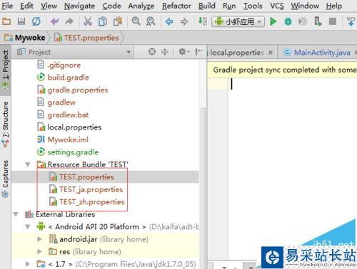 7、創建完成之后,可以在Android studio的項目中,將會在resource bundle的選項顯示了不同語言的文件。