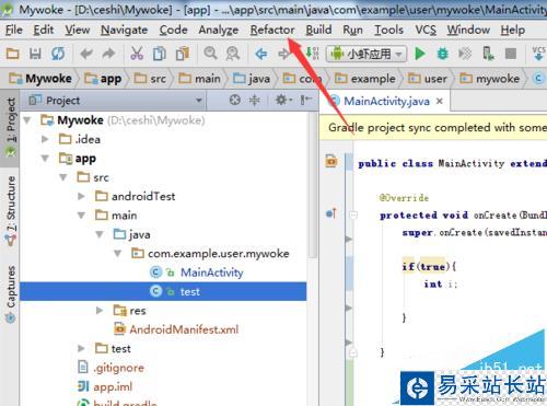 3、然后就可以點擊Android studio菜單中列表中的Refactor的選項。