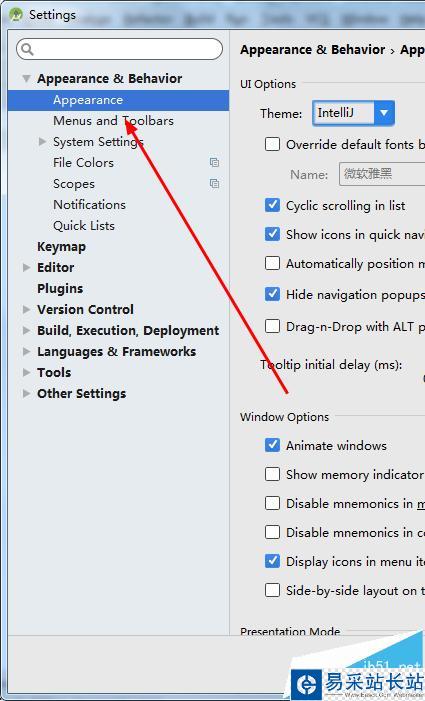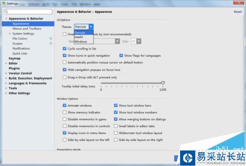 5、appearance&behavior下拉列表里選擇appearance外觀