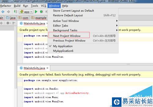 在對Android studio中進行對項目中的開發(fā)Android上的代碼,那么一個當(dāng)中進行對項目上的開發(fā),那么在就會打開多個項目對項目中進行對其的開發(fā),當(dāng)當(dāng)對一個項目上的開發(fā),根據(jù)自己的要求的話,那么切換到另一個項目的開發(fā)。