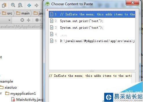 1、進(jìn)行點(diǎn)擊Android studio菜單中的edit的后彈出下拉菜單中進(jìn)行選擇為paster from history選項。