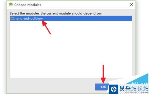 4、選擇前面步驟中導入的Library項目后,點擊OK按鈕導入到原始項目中。