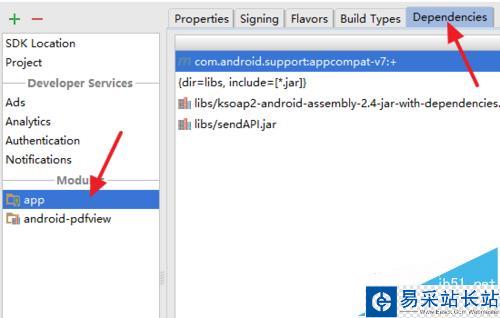 2、在窗口左側選擇原始的項目后,點擊右側的Dependencies(依賴項)。可以看到項目當前引用的jar包等信息。