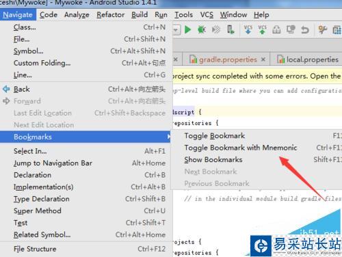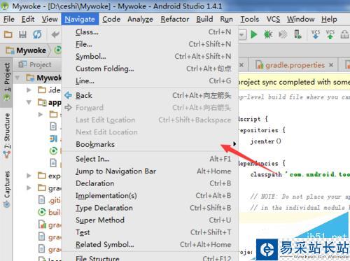 2、然后進(jìn)行點(diǎn)擊Android studio的菜單中的“navigate”的選項(xiàng)中。