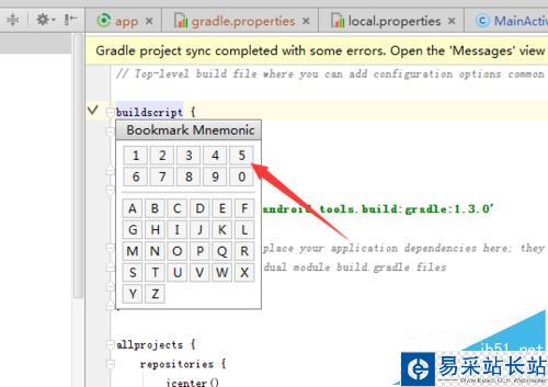 5、這樣在代碼中就會(huì)彈出了一個(gè)Bookmark mnemonic的選項(xiàng),然后就選擇一個(gè)標(biāo)簽的數(shù)字信息。