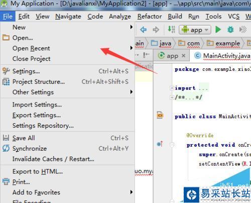 2、彈出了下拉菜單中進行選擇為了open recent的選項菜單。