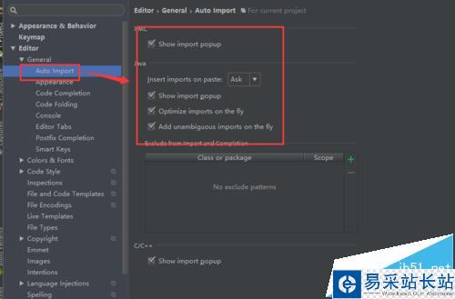 5、選擇auto import ,然后將右側的選項都打滿鉤