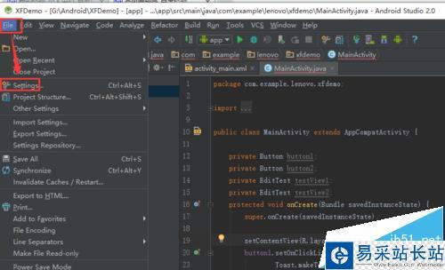 2、選擇File 下 的settings