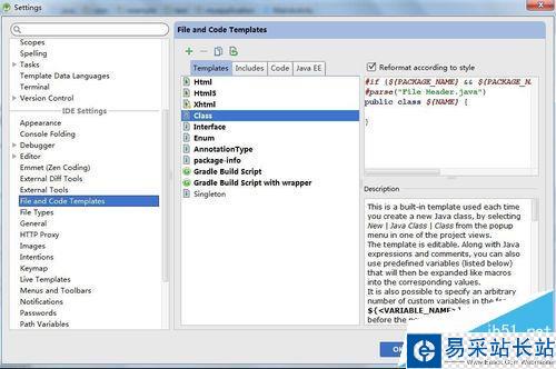 2、點擊“IDE Settings”下面的“File and Code Templates”,然后選中Templates里面的Class。