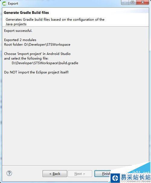 3、點擊finish,第一次導入不會報什么錯誤,第二次導入的時候會報一個異常,大體就是你選擇的文件已經生成了gradle文件,所以你要選擇下面的一個復選框就是強制再生成一次,就可以了,如下圖所示: