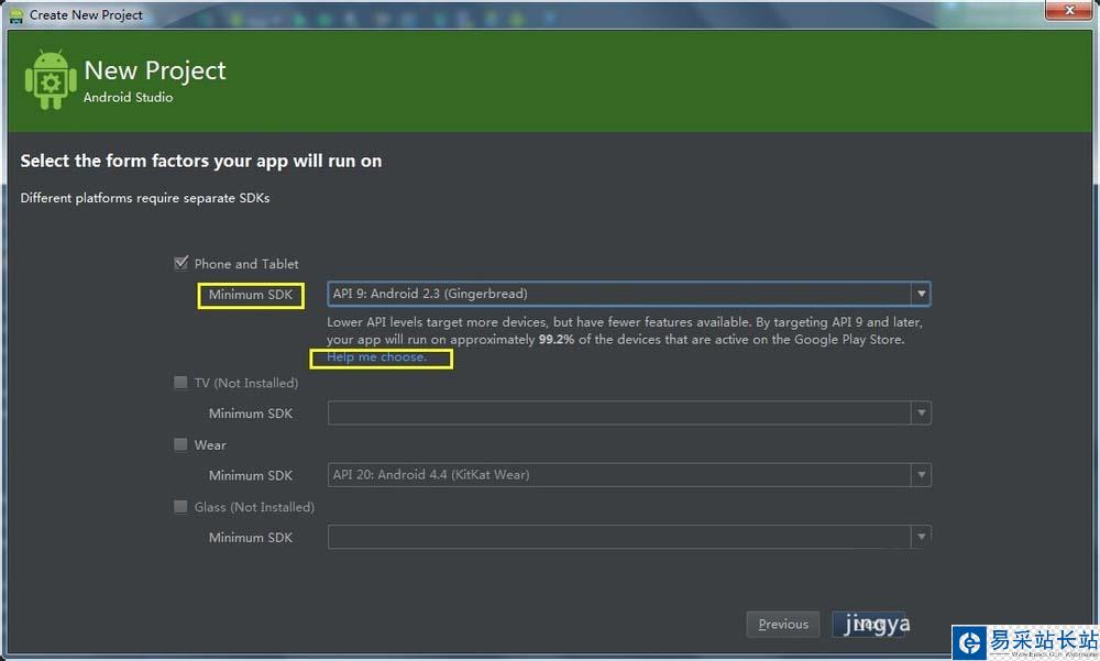 3、接下來設定兼容的安卓的最小版本,這依情況而定,我這里設定為安卓2.3版本。