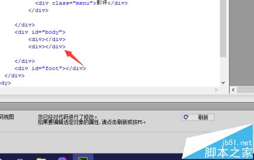 2、自然,要定義body部分,就要用到body的代碼。我們在body之間輸入兩個關于div的代碼。